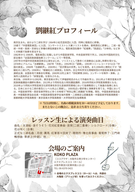 二胡の普及と後継者の育成に情熱を燃やす指導者。